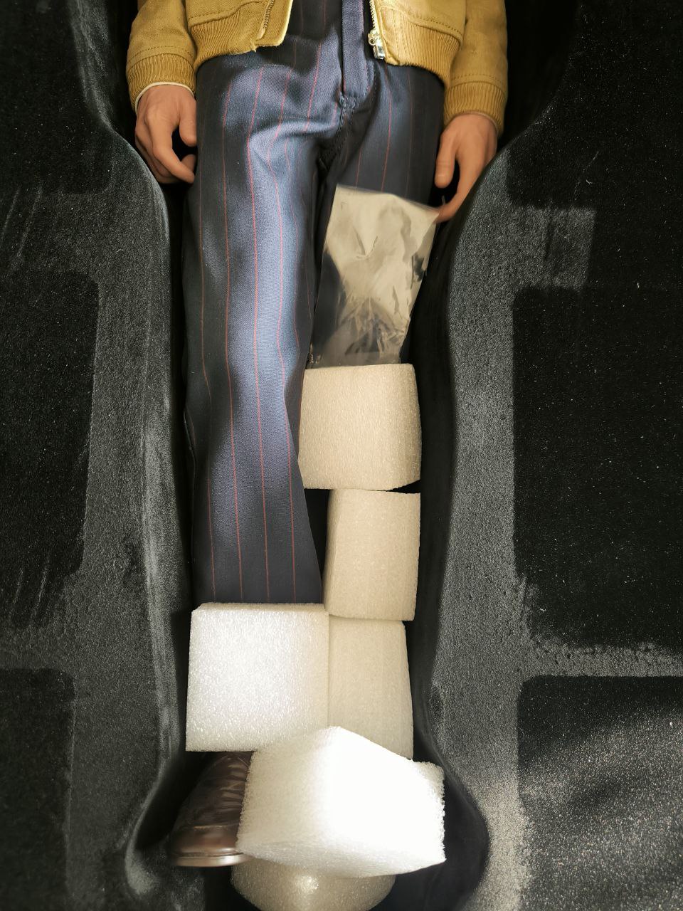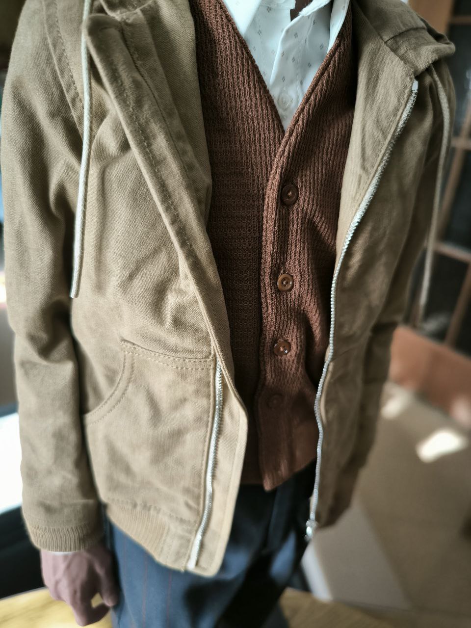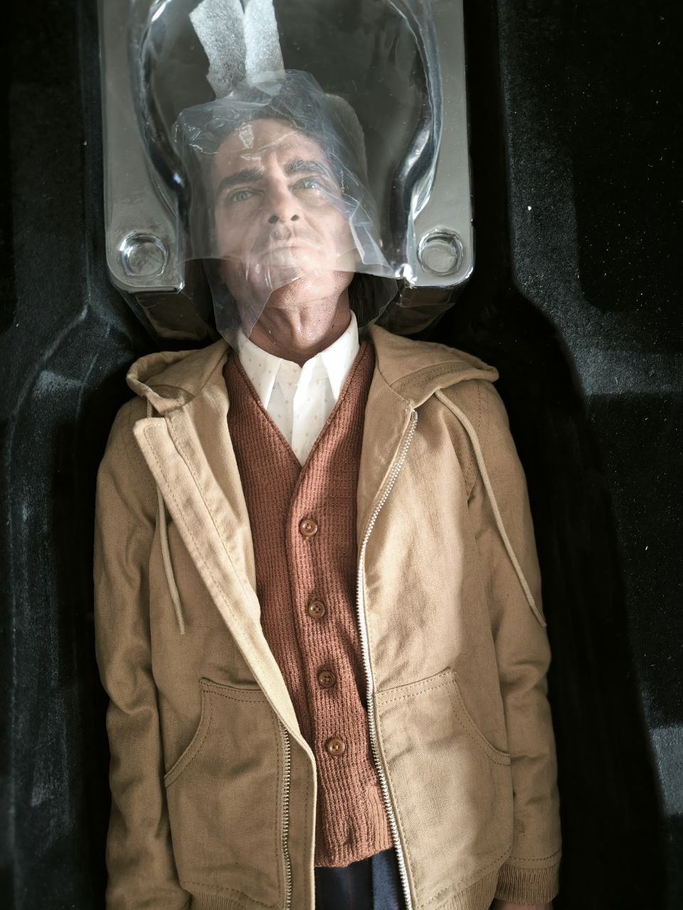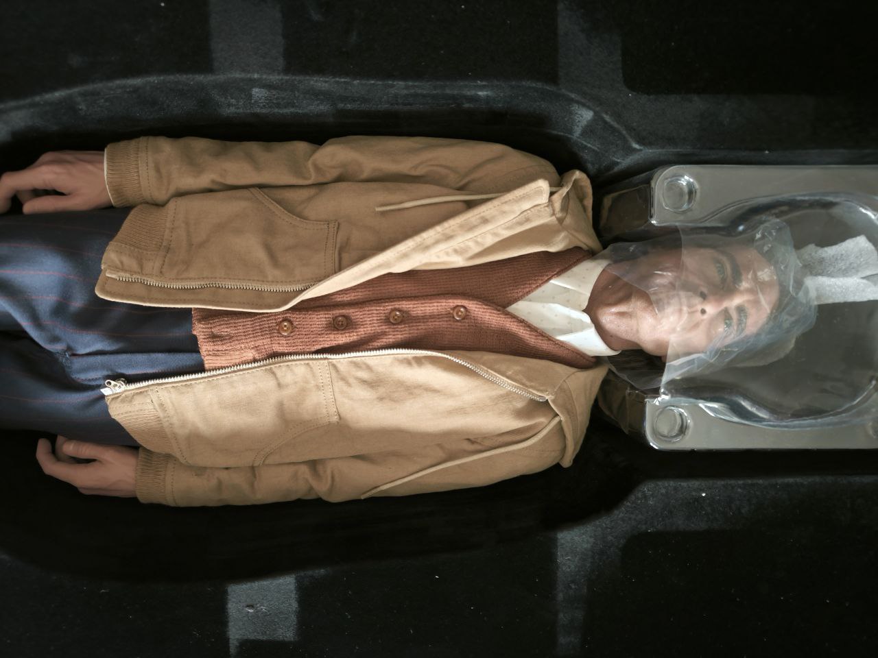Wardrobe was tailored and fitted by professionals to recreate the fit and the texture exactly as displayed in the movie. Wardrobe accessories, such as the buttons and zipper were manufactured separately to get the scale just right and to keep it hyperreal.