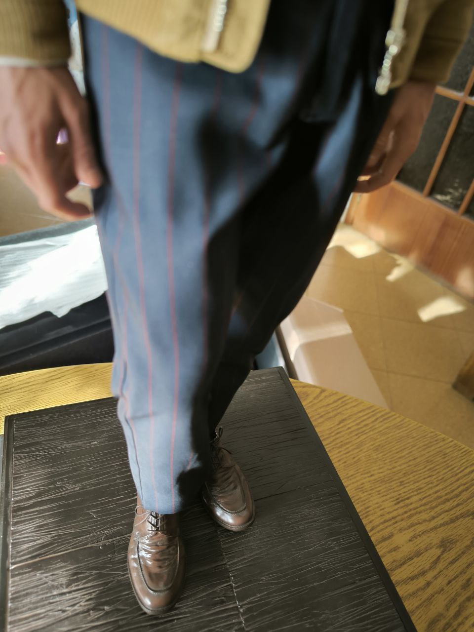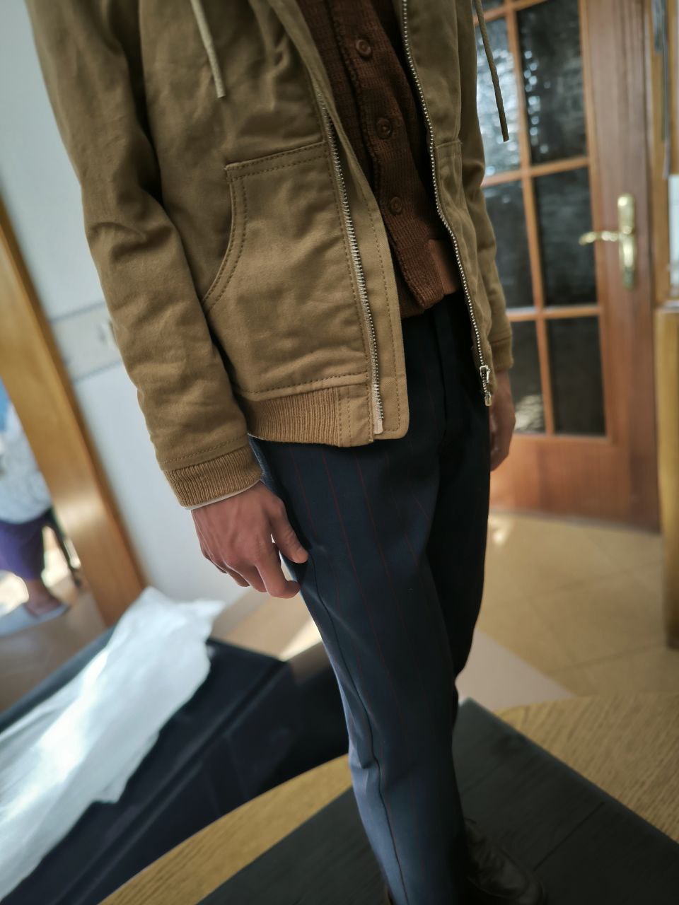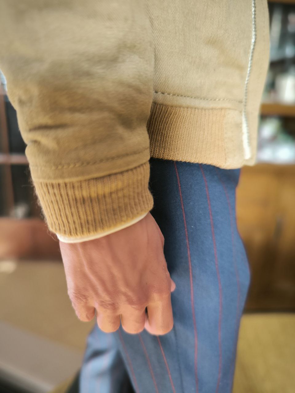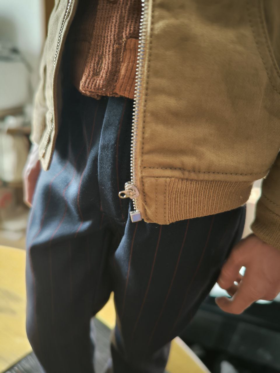 Wardrobe was tailored and fitted by professionals to recreate the fit and the texture exactly as displayed in the movie. Wardrobe accessories, such as the buttons and zipper were manufactured separately to get the scale just right and to keep it hyperreal.