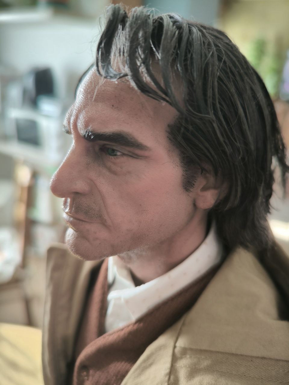 Joker is THE character, but the way Juaquin Phoenix portrayed Arthur Fleck for most of the screen time in his process of becoming Joker was nothing short of masterful. As hyperrealism is the strength and concept of JND Studios, Arthur Fleck, in his most vulnerable state of character, was decided more fitting to showcase our skills, rather than Joker, covered up in makeup. We created Arthur Fleck the Hyperreal Movie Statue out of hopes that collectors would feel the same emotions we felt as we watched the story of Arthur Fleck play out on screen.